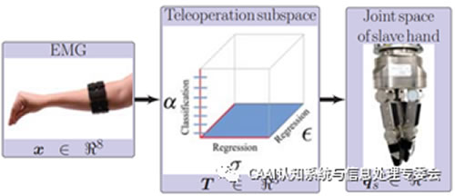 2019年,哥倫比亞團(tuán)隊(duì)提出了一種由EMG驅(qū)動(dòng)的非擬人化機(jī)器人手遙操作方法,這種方法將人前臂的EMG信號(hào)連續(xù)映射與遠(yuǎn)程操作相關(guān)的三個(gè)子空間中,然后再從這個(gè)子空間映射到機(jī)器人手的關(guān)節(jié)空間[4]。這個(gè)方法有效且直觀,使新手操作者更快熟悉操作方案,可以魯棒地完成遠(yuǎn)程操作拾取和放置任務(wù)。
