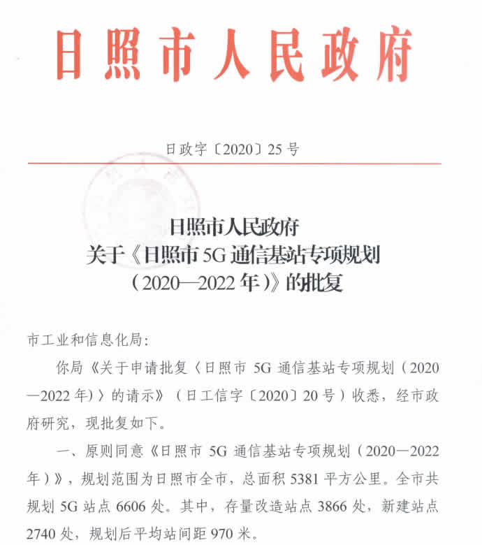 日照市5G通信基站專項(xiàng)規(guī)劃(2020-2022年)