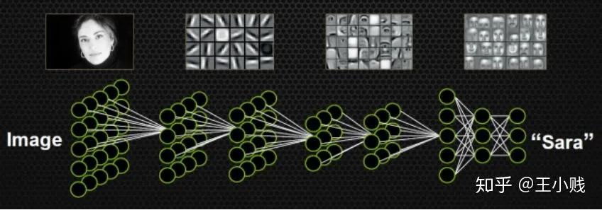 而通過一些對神經網絡隱層的可視化我們也發現:比如下圖的一個人臉識別的例子,神經網絡在這個過程中先學到了邊角的概念,之后學到了五官,后學到了整個面部的特征。