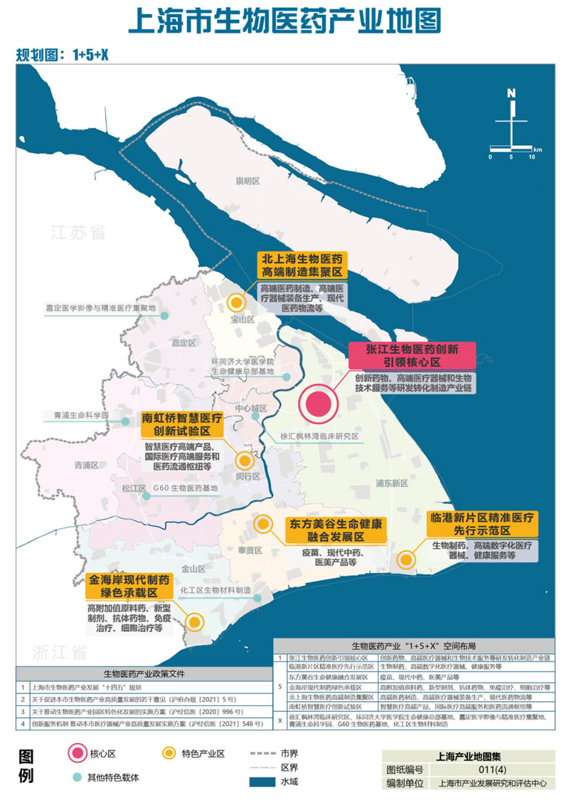 上海市深化“1+5+X”為主體的生物醫藥產業空間布局,打造張江生物醫藥創新引L核心區,臨港新片區準確醫療先行示范區、東方美谷生命健康融合發展區、金海岸現代制藥綠色承載區、北上海生物醫藥G端制造集聚區、南虹橋智慧醫療創新試驗區五大特色產業區,培育特色產業載體。上海生物醫藥產業空間布局如下: