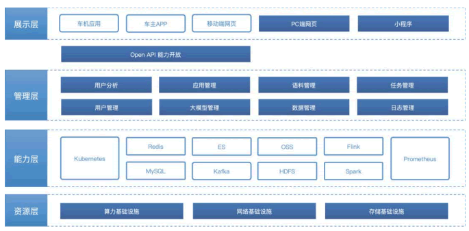 車輛智能運維助手集成了日常車輛運維所涉及的各項服務內容,旨在提供多面、G效、智能的車輛維護和管理解決方案,系統架構如下圖所示: