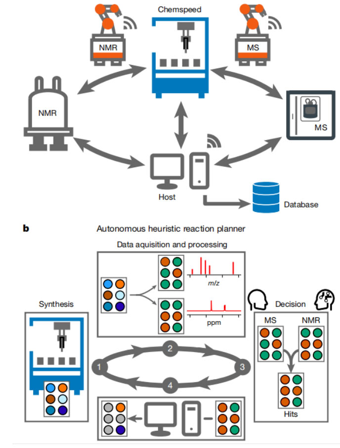 “我們通過為機器人構(gòu)建 AI 邏輯來解決這個問題。這將處理分析數(shù)據(jù)集以做出自主決策 -- 例如,是否繼續(xù)進行反應(yīng)的下一步。這個決定基本上是即時的,所以如果機器人在凌晨 3:00 進行分析,那么它將在凌晨 3:01 之前決定對進展的反應(yīng)。相比之下,化學(xué)家可能需要幾個小時才能瀏覽相同的數(shù)據(jù)集。