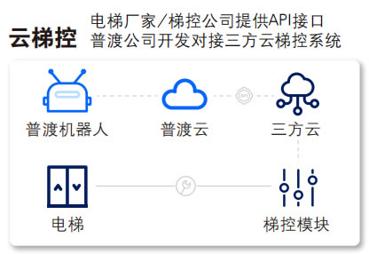 云梯控通過云端API接口與電梯控制系統進行 數據交互。服務機器人可以通過網絡訪問電 梯操作系統,而無需對電梯進行任何硬件改 造。這一過程依賴于云計算平臺的實時處理 和數據分析能力。云梯控的優勢在于不需要 改造電梯,通過API接口實現機器人乘梯;兼 容性G,可以供不同類型的服務機器人在同 一個場景共同乘梯 ;功能實現靈活,可通過 電梯接口去實現不同乘梯需求。