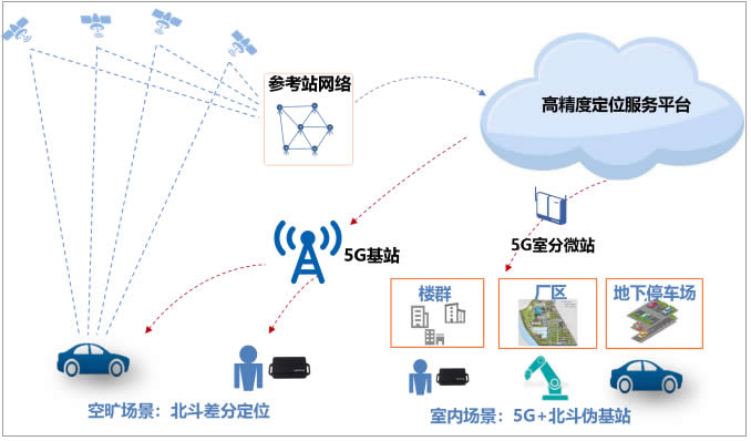 定位能力——北斗衛星定位系統能夠覆蓋較廣的范圍,為區域內的用戶 提供G精度定位服務;而在一些遮擋場景(寫字樓、商場、地下停車場、 G架橋)等,衛星定位很難正常使用,需要 5G 基站覆蓋來補充,兩者 融合實現室內外場景的多面覆蓋