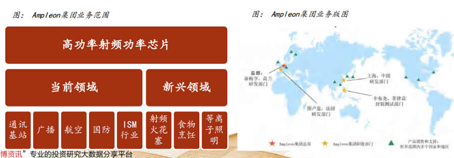Ampleon集團(tuán)原為著名半導(dǎo)體企業(yè)NXP的射頻功率部門,在射頻功率芯片行業(yè)擁有超過 50年的運(yùn)營經(jīng)驗(yàn),后經(jīng)剝離成立公司并由建廣資產(chǎn)成功競標(biāo)。根據(jù)研究機(jī)構(gòu)ABI Research 的統(tǒng)計(jì),2016年Ampleon集團(tuán)在射頻功率半導(dǎo)體行業(yè)的市場占有率為19.6%,排名D二。 公司的射頻功率芯片主要供應(yīng)各大通訊基站設(shè)備制造商。Ampleon的經(jīng)營模式介于IDM模式 與Fabless模式之間,其業(yè)務(wù)涵蓋射頻功率芯片的設(shè)計(jì)、封裝測試以及終的銷售環(huán)節(jié),但 不包括晶圓采購、芯片制造及測試等中間環(huán)節(jié)。公司擁有Si LDMOS技術(shù)以及一代G端 半導(dǎo)體射頻氮化鎵技術(shù),GaN業(yè)務(wù)主要通過由晶圓廠商(UMS)代工的方式實(shí)現(xiàn)產(chǎn)品出貨。 公司基站芯片業(yè)務(wù)占業(yè)務(wù)總收入的88%。