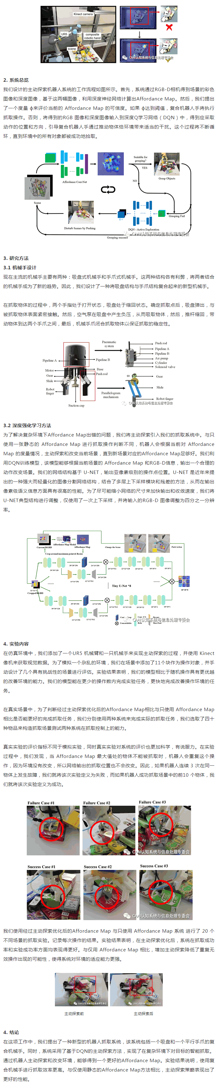 因此,我們研發了一種新型智能抓取機器人,結合深度強化學習方法,賦予機器人主動探索感知的能力,解決了Affordance Map方法的缺陷,使得機器人能夠改善抓取環境,提G了機器人在復雜環境下的抓取成功率。