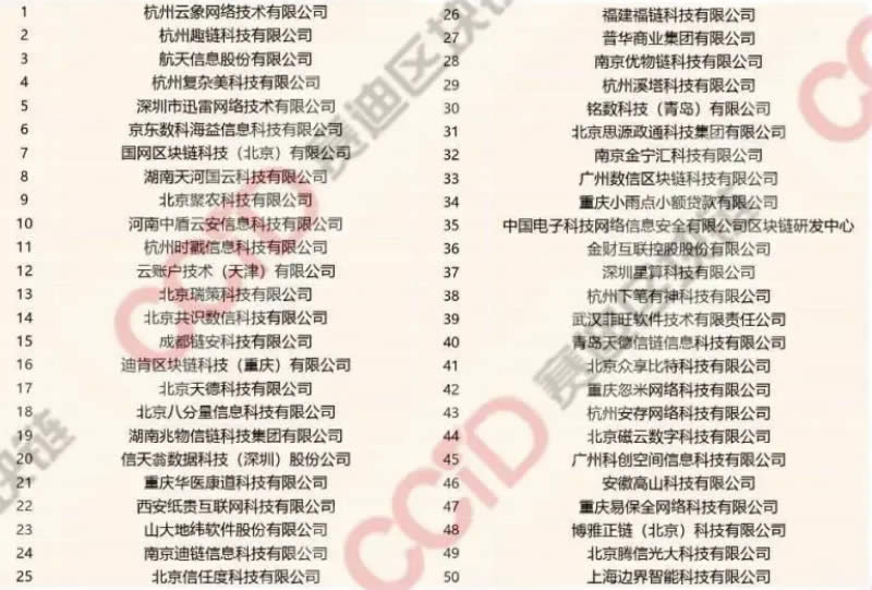 2020中國區塊鏈技術創新典型企業名錄名單