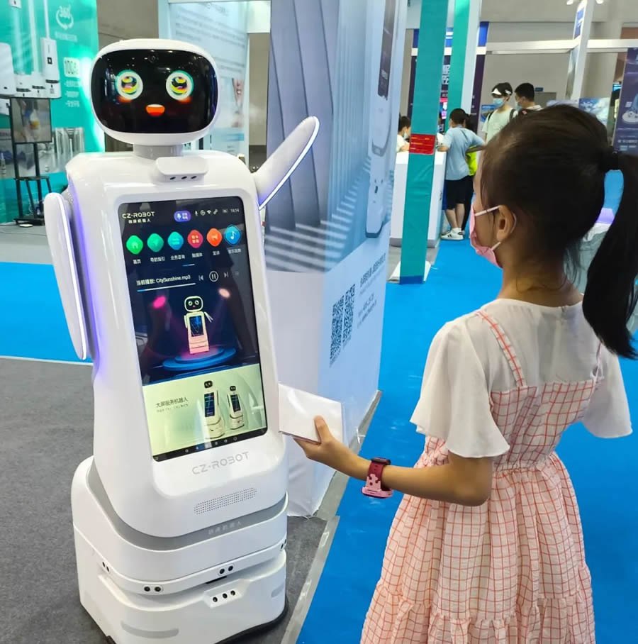 展會(huì)現(xiàn)場(chǎng),創(chuàng)澤集團(tuán)的智能消毒機(jī)器人、商用服務(wù)機(jī)器人擔(dān)任了大會(huì)“志愿者”工作,信息查詢、迎賓接待、宣傳講解、安全消毒等多項(xiàng)任務(wù),都出色的完成了并吸引了大量觀眾駐足交流,現(xiàn)場(chǎng)吸睛無(wú)數(shù)。