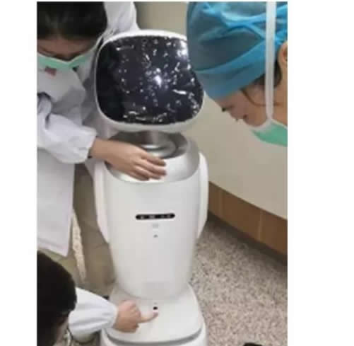 輪式移動機器人,具有自主移動及自主避障功能,可以 為患者提供醫療看護、遠程監控、遞送物品、互動娛樂等服務。