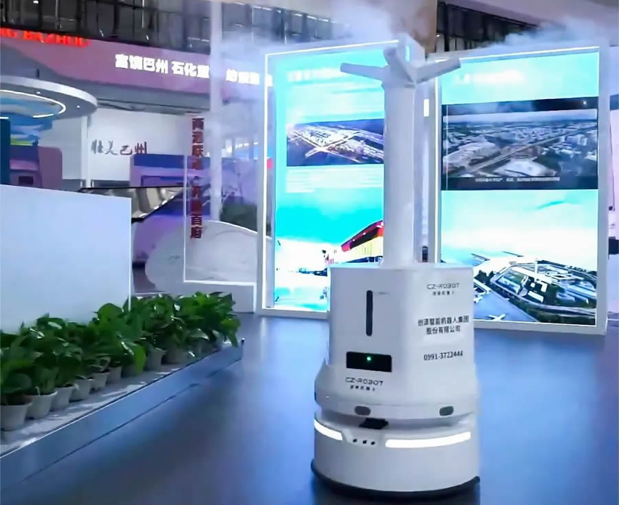本屆博覽會(huì)由商務(wù)部、外交部、中國(guó)貿(mào)促會(huì)、新疆維吾爾自治區(qū)人民政府等共同主辦。以“共商、共建、共享、合作向未來”為主題,采取線上線下相結(jié)合的方式。來自亞洲、歐洲、非洲、美洲的32個(gè)國(guó)家(地區(qū))的3600家企業(yè)參展參會(huì)。本屆博覽會(huì)展覽面積4萬(wàn)平方米,設(shè)置投資合作、國(guó)際及港澳臺(tái)和商品貿(mào)易三大展區(qū)。 創(chuàng)澤集團(tuán)受邀攜旗下智能服務(wù)機(jī)器人、智能消毒機(jī)器人等產(chǎn)品亮相,與大家從不同角度針對(duì)機(jī)器人行業(yè)應(yīng)用進(jìn)行面對(duì)面體驗(yàn)交流。面向新零售、行政、公共服務(wù)、餐廳、金融、教育、醫(yī)療、旅游、酒店各大L域,提供30+成熟的場(chǎng)景落地解決方案。 在展會(huì)期間,創(chuàng)澤集團(tuán)智能服務(wù)機(jī)器人和智能消毒機(jī)器人一經(jīng)亮相就吸引了不少媒體采訪。記者們看到正在工作的消毒機(jī)器人后興趣十足,向工作人員深入了解了它的消殺能力以及內(nèi)在科技技術(shù)。智能消毒機(jī)器人采用超聲波霧化技術(shù),優(yōu)越的滲透擴(kuò)散能力,自主知識(shí)產(chǎn)權(quán)霧化系統(tǒng),出霧量大殺毒效果快,環(huán)形立體消毒,霧化速度達(dá)3500g/h,可實(shí)現(xiàn)全場(chǎng)景的廣域無(wú)死角消殺工作。配備的自動(dòng)駕駛系統(tǒng),在工作過程中,可自主規(guī)劃路徑,自動(dòng)躲避障礙物,即便在人流量較大的商場(chǎng)、地鐵、醫(yī)院等場(chǎng)所,也能夠輕松避讓人群,完成消殺作業(yè)。