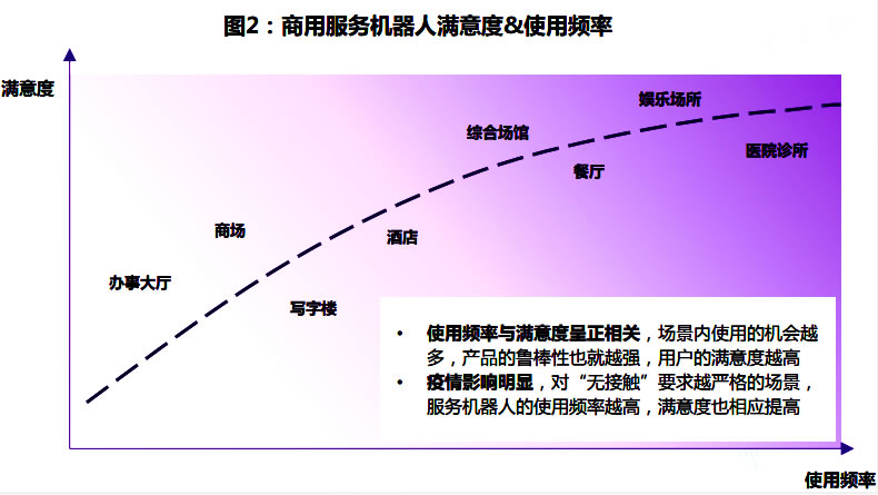受到近兩年受疫情催化的影響,對于“避免人員接觸”要求越G的場景下,服務(wù)機器人的使用頻率越G,客戶滿意度也會相應(yīng)地提升;但需要注
