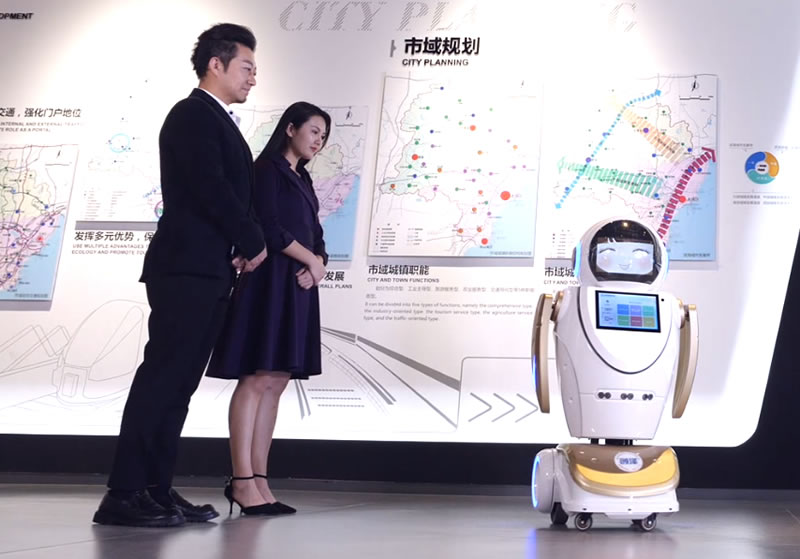 智能接待:機器人會主動打招呼并且問好;業務咨詢:機器人可以智能幫助游客解答;導覽講解:給參觀者講解各類產品,知識點等業務;自主行走:在工作區域自主行走